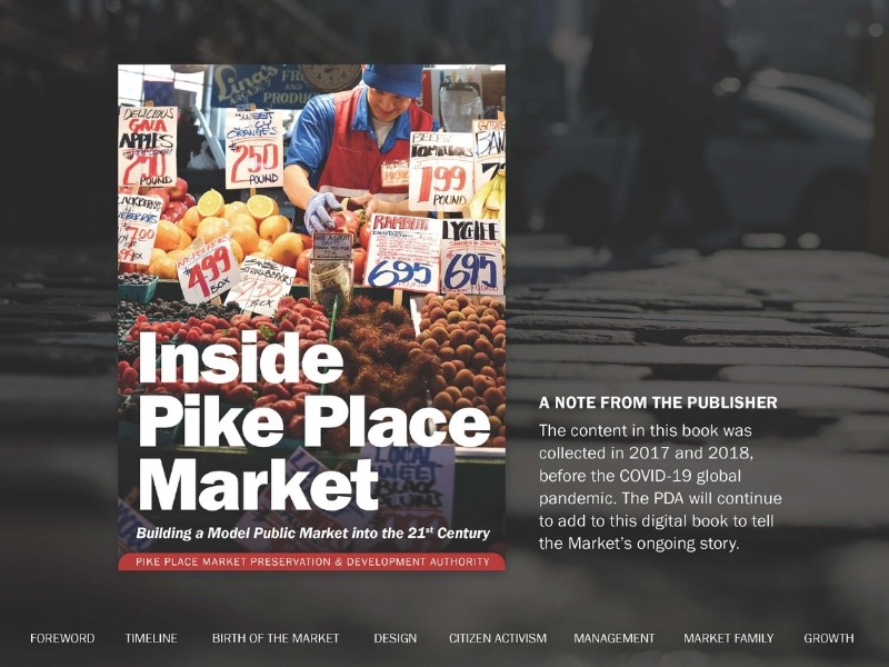 With construction complete, the configuration of the Market looks much like it does today. A branch of the Seattle Public Library opens on the lower floor.