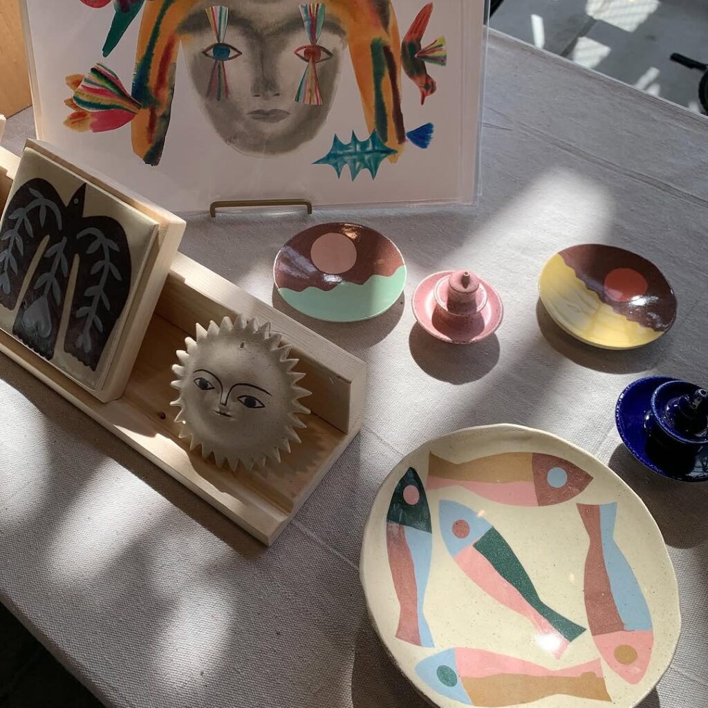 Cute critter friends are abundant at the table of one of our newest craftspeople, dogear productions. Shop hand-painted wooden pieces formed into wall art, magnets, and tabletop decorations. His works are available as wall art, planter decor, and even functioning clocks! Each character comes to life with colorful details and expressive personalities, perfect for cartoon lovers. Custom commission works are accepted to craft designs of a beloved pet for a specially curated gift.