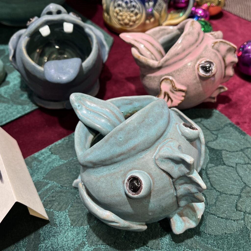 Shop whimsical salt cellars crafted into the shapes of sea creatures at Dark Duck Clay Shop. Her table is filled with specialty wheel-thrown and sculpted products for all uses in the kitchen and home, often inspired by the ocean and natural landscape. Each salt cellar is a unique character, sure to generate laughs and joy when gifted this holiday season. Tip: the tongue is the spoon!