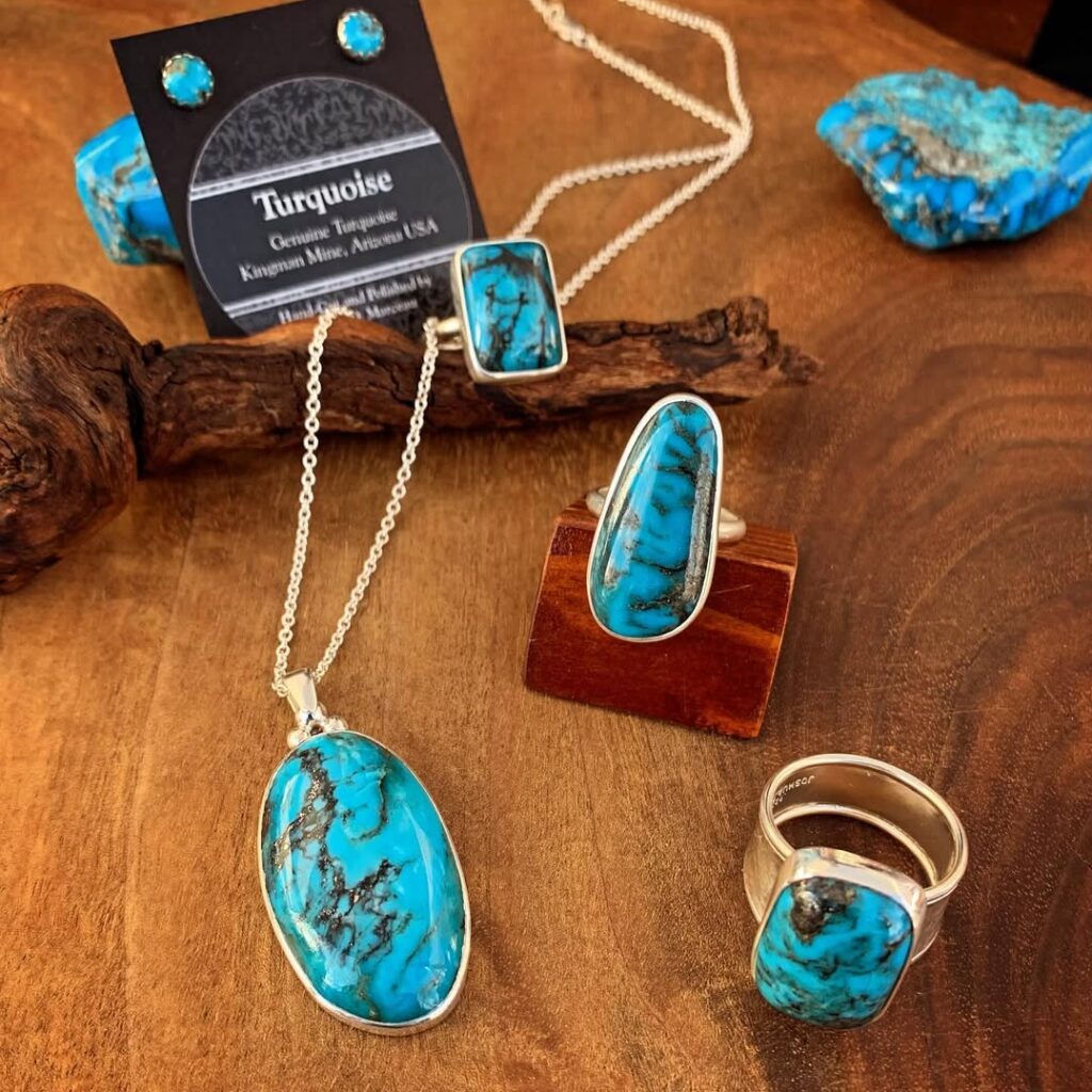 Shop fine jewelry from a classically trained silversmith, who specializes in sterling silver jewelry that honors traditional Indigenous craftsmanship. Stones are personally curated by the maker directly from mine owners. Each is cut and polished by hand for the finest quality setting. His collection features striking minerals such as turquoise, opals, lapis, larimar, and charoite, creating distinctive pieces for both men and women.