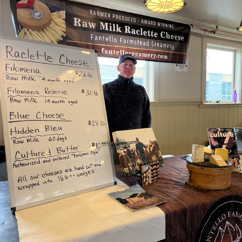 The Fantello Farmstead Creamery joined Pike Place Market in 2022, bringing their award-winning cheeses and cultured butter to the Market. Fantello Farmstead Creamery began in 1918 in Enumclaw and continues to use the same farm-to-table methods.