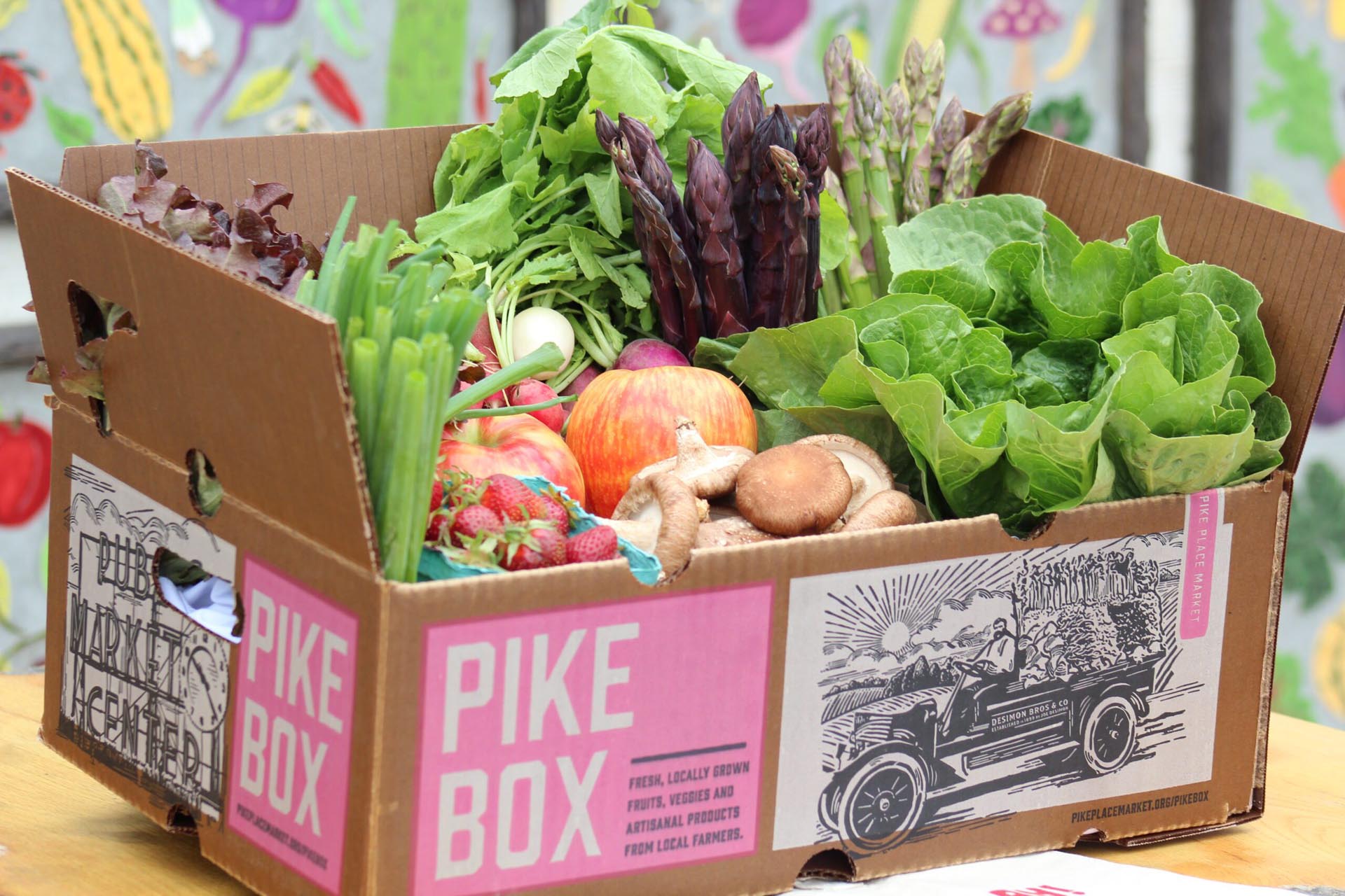 The Pike Place Market Preservation and Development Authority created the PIKE BOX CSA program in 2013 with the goals of helping local farmers grow their businesses, connecting Seattle workers and residents to local food sources, and providing fresh produce to anyone who needs it.