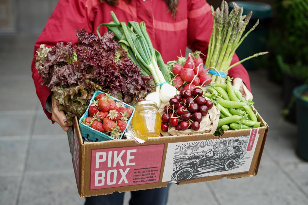 Pick up for the Spring PIKE BOX will be every Wednesday from 3pm – 7pm on the north end of Pike Place across the street from Starbucks. Click here to view the pick-up location on our interactive Market Map.